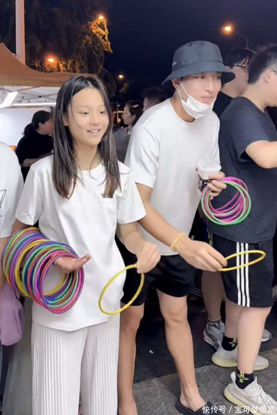 最后啊,父女俩去到了套圈摊位。这贾乃亮大手一挥,就买了100块钱的圈,那可真是下了血本了。这两个人高兴地玩了起来,这时候可好,贾乃亮比甜馨还激动,套到了就一个劲儿地去拍打甜馨,甜馨就很淡定地说:“大惊小怪的。”这一瞬间啊,真让人觉得不知道是谁带谁出来玩了。